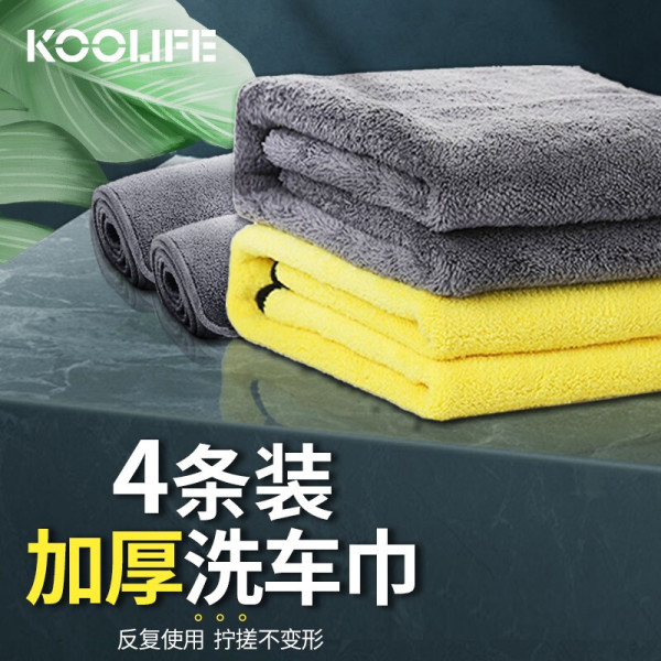OOLIFE 洗车毛巾 擦车专用毛巾抹布无痕强吸水布内饰清洁 汽车用品4条装