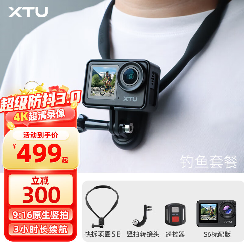 骁途S6运动相机4K超级防抖摩托车头盔记录仪户外钓鱼相机自行车Vlog运动摄像机 S6钓鱼套餐 无内存卡