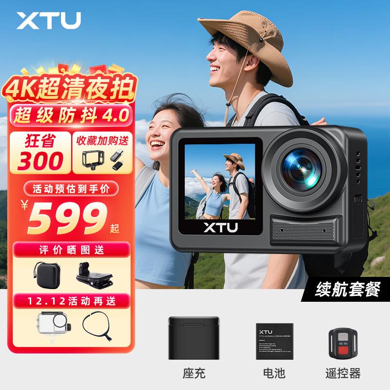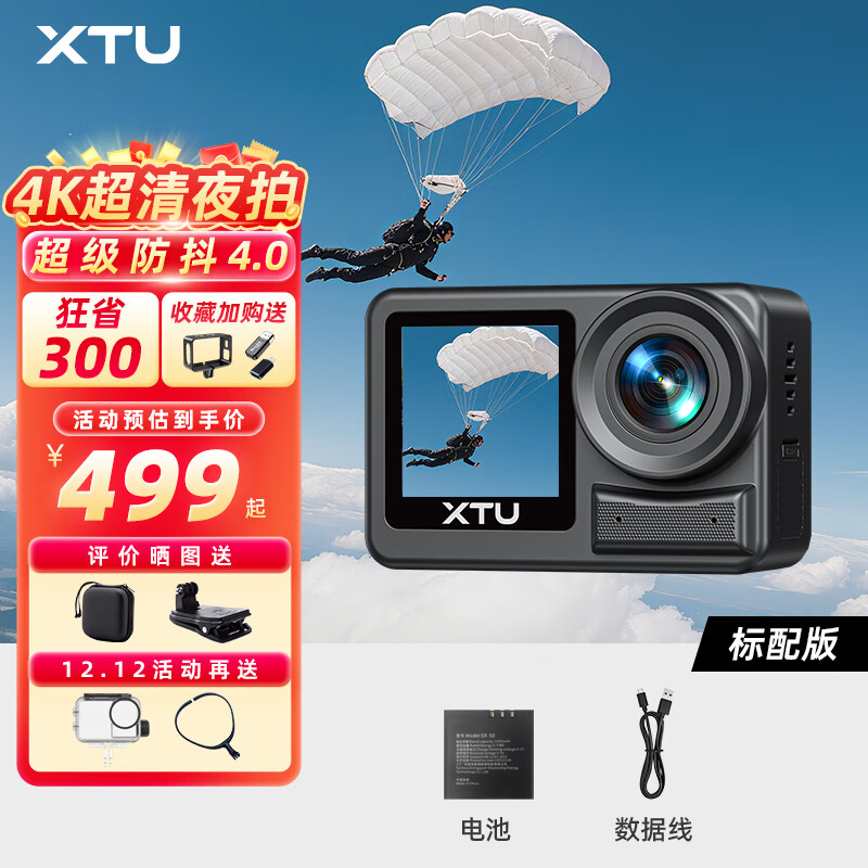 XTU 骁途 T300拇指运动相机摩托车记录仪4K超强夜拍 标配版