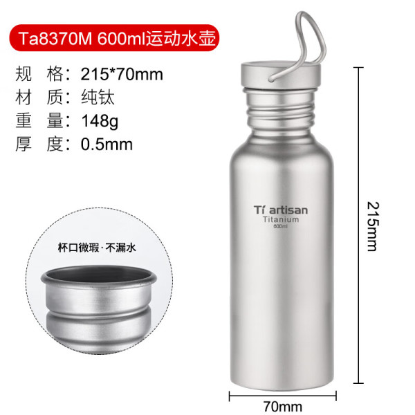 Ti artisan 钛工匠纯钛运动水壶户外便携超轻喝水大容量骑行水壶弯提环水瓶 运动水壶600ml喷砂款