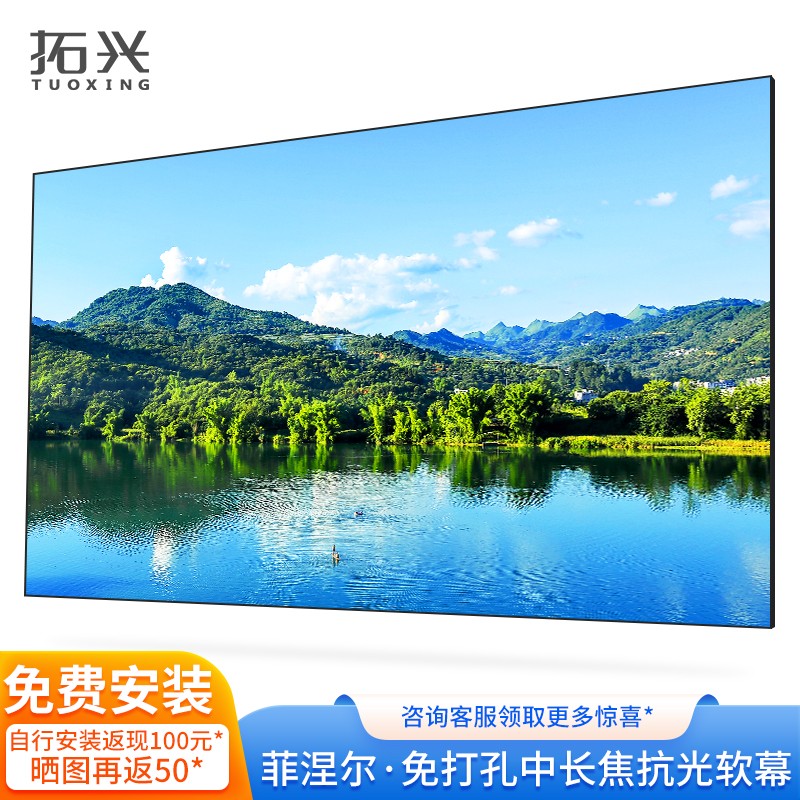 拓兴 【免费安装】菲尼尔中长焦抗光幕 画框投影幕 窄边框柔性画框硬屏家用办公投影幕 【100英寸】菲涅尔·免打孔中长焦抗光软幕