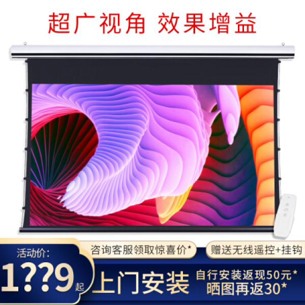 拓兴电动拉线投影幕布 投影仪通用 家用办公智能无线遥控 幕布家用抗光屏幕遥控投影幕 纳米白软幕16:9 150英寸