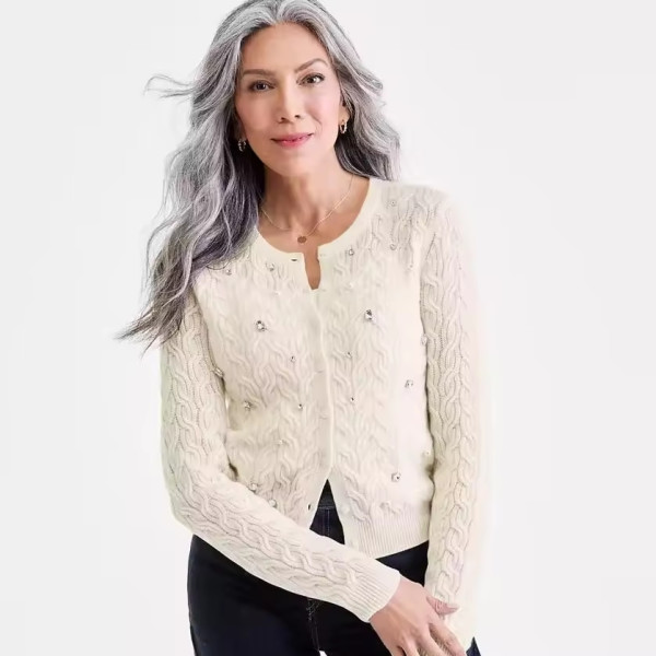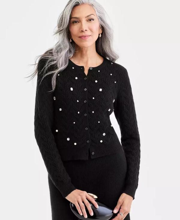CHARTER CLUB 水钻珍珠装饰 女士羊绒开衫 二色可选