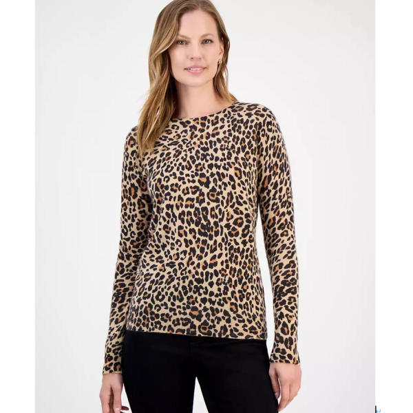 CHARTER CLUB 女士 豹纹圆领羊绒衫