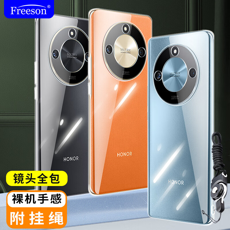 Freeson 适用荣耀X60i手机壳保护套简约轻薄全包镜头防摔清透软壳【四角气囊防撞-附挂绳】透明