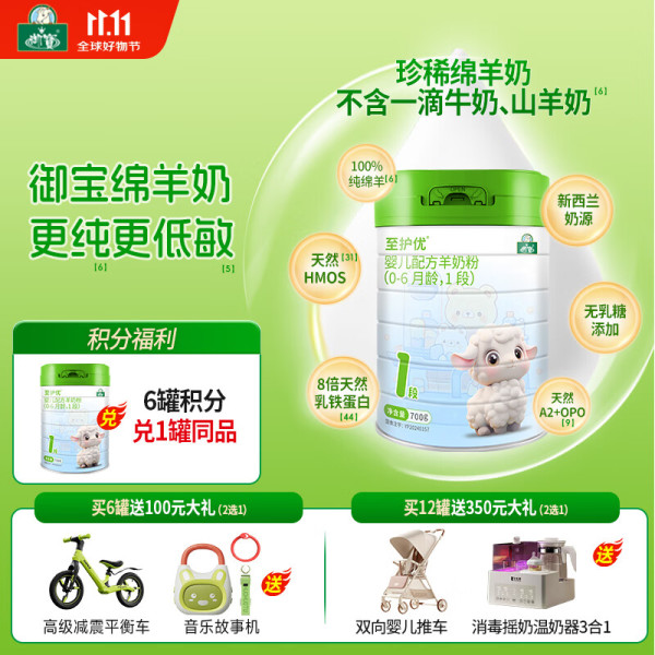 御宝 YB 至护优婴儿绵羊奶粉新生儿低敏宝宝奶粉试用无添乳糖HMO乳铁蛋白 1段 至护优 700g