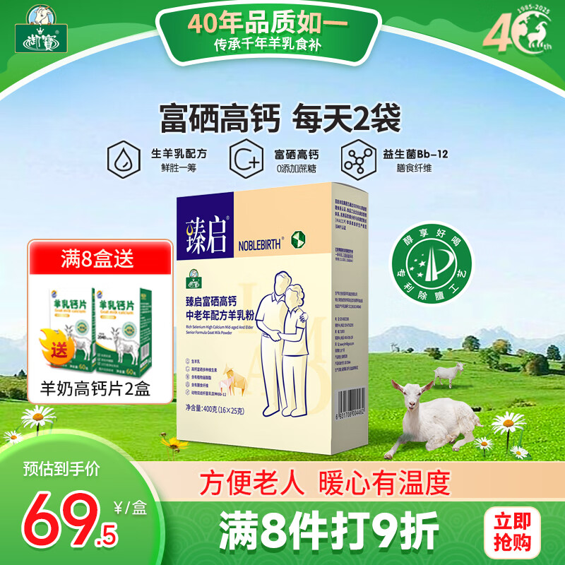 御宝中老年羊奶粉富硒高钙成人奶粉 无添蔗糖400g盒装独立小包条装