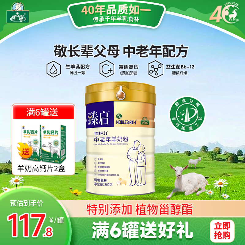 御宝中老年高钙富硒益生菌羊奶粉800g罐无添蔗糖老年人免疫力补充营养