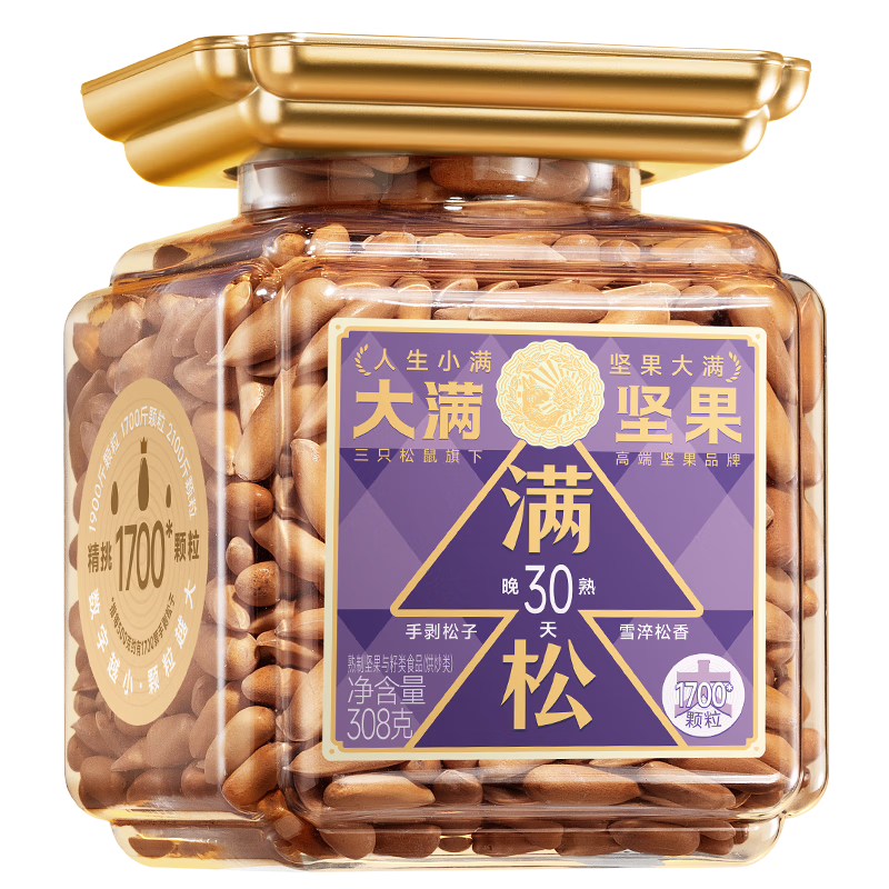 三只松鼠大满坚果手剥大颗粒阿富汗松子SS级308g休闲零食礼包每日坚果炒货