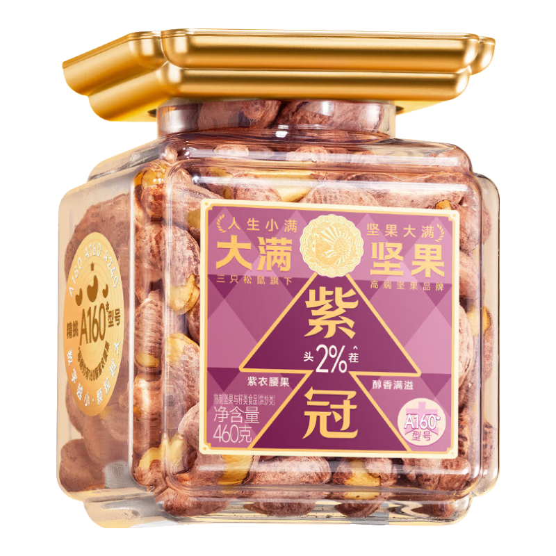 三只松鼠大满坚果A160紫皮腰果460g健康0添加休闲零食礼包每日坚果炒货