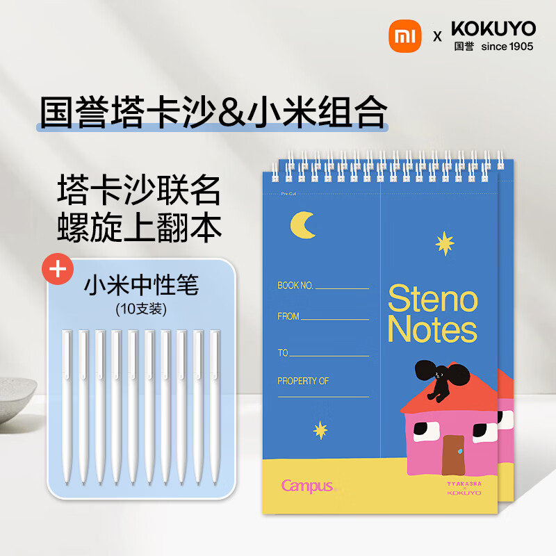 小米办公中性笔10支装国誉塔卡沙线圈本2本装组套