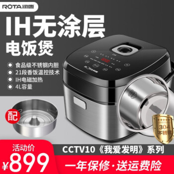 润唐(ROTA)RTIH-4005家用智能IH电磁加热米汤无涂层不锈钢内胆电饭煲锅 IH-4005拉丝银 4L