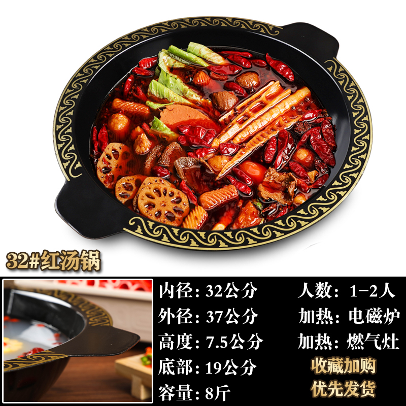 火锅锅商用重庆火锅店电磁炉专用搪瓷铁锅具汤锅串串香鸳鸯火锅盆