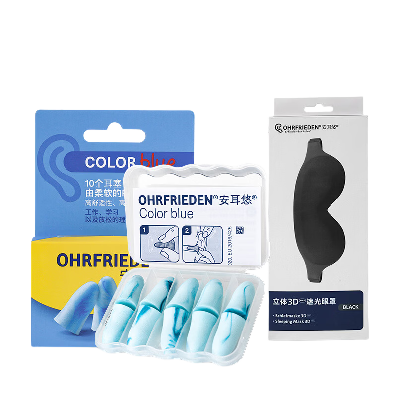 安耳悠 德国进口睡眠隔音耳塞 blue5对 3D立体遮光眼罩 男女舒适午睡