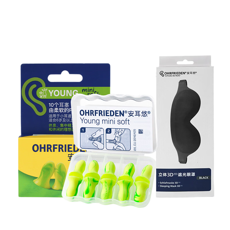 安耳悠 德国进口隔音睡眠耳塞立体透气男女 minisoft5副 升级遮光眼罩