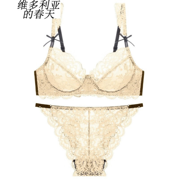 维多利亚的春天 旗舰正品欧美新款舒适柔软蕾丝简约性感超薄文胸套装 米黄 80A