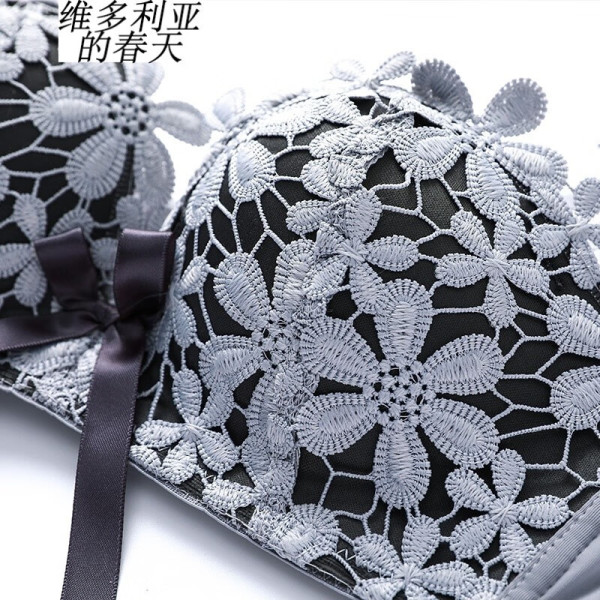 维多利亚的春天 内衣女小胸聚拢无钢圈性感胸罩加厚收副乳调整型文胸套装 灰色 70A