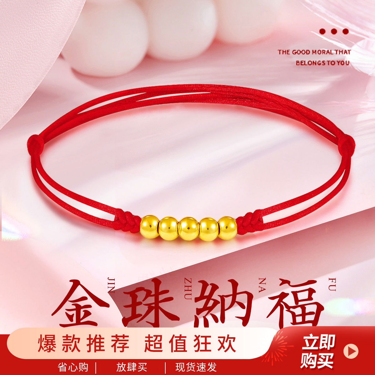 CEMNI千年珠宝 黄金转运珠女小金珠足金999本命年红绳百搭简新年 单颗珠子红绳-QD5130