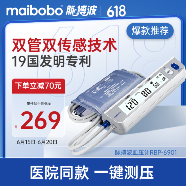 瑞光康泰 maibobo)脉搏波电子血压计血压仪家用血压测量仪医用高精准高血压测量仪