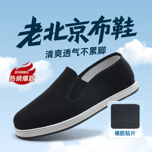 移动端、京东百亿补贴:励风 老北京布鞋休闲透气手工千层底一脚蹬中老年爸爸工作开车鞋黑色40