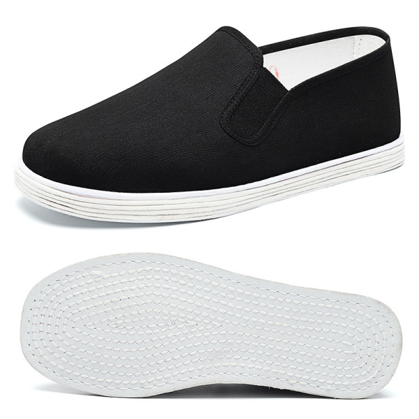移动端:励风 老北京布鞋男款夏季纯手工千层底中老年一脚蹬休闲透气养脚黑布鞋