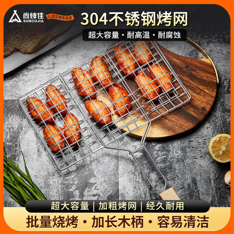 尚烤佳(Suncojia)304烤鱼夹 家用不锈钢烤蔬菜夹 加粗加密烧烤烤鱼网夹网篦子工具