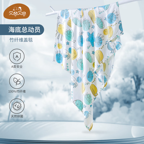 贝谷贝谷婴儿竹纤维盖毯宝宝冰丝毯儿童夏凉被幼儿园空调被新生儿被子 海底总动员 冰丝毯130*110cm