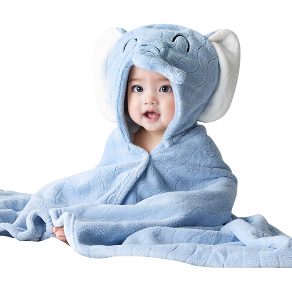 贝谷贝谷儿童浴巾洗澡新生婴儿带帽浴袍珊瑚绒加厚软吸水速干宝宝斗篷裹巾 A类加厚款 蓝色小象 礼袋装 120*80cm
