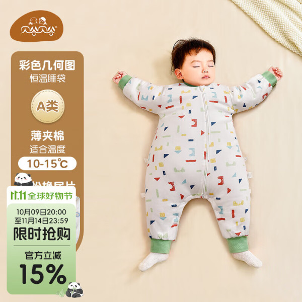 贝谷贝谷婴儿睡袋春秋冬季加厚恒温纯棉儿童防踢被子可拆袖宝宝分腿睡袋 彩色几何图 秋冬中厚 室温10-15°C S码 身高70-85cm 年龄6-18个月
