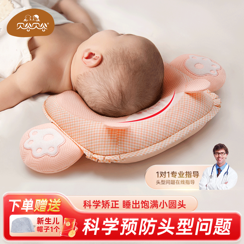 贝谷贝谷 婴儿枕头 定型枕 0-1岁宝宝枕头护型婴儿枕四季新生儿童纠正偏头 萌萌熊桔 防吐奶枕巾 乳胶颗粒双面枕芯