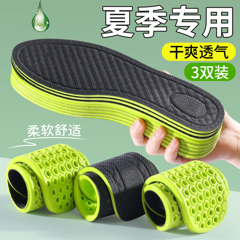 蜜羽香巢3双鞋垫抗菌除臭清凉透气吸汗软弹久站不累军训专用鞋垫夏季 【3双装】夏季专用 37-38码