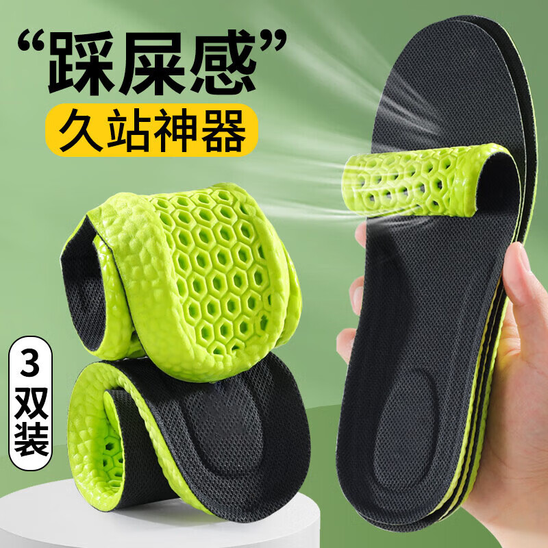 蜜羽香巢3双鞋垫抗菌除臭清凉透气吸汗软弹久站不累军训专用鞋垫夏季 【3双装】久站不累 45-46码