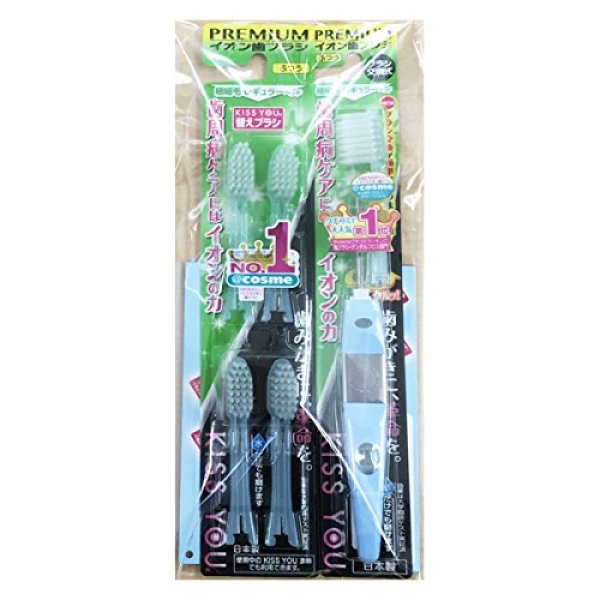 KISS YOU 日本进口负离子牙刷成人极细软毛便携家庭装男女士牙刷替换刷头 软毛牙刷(1支)+替换头- 2支