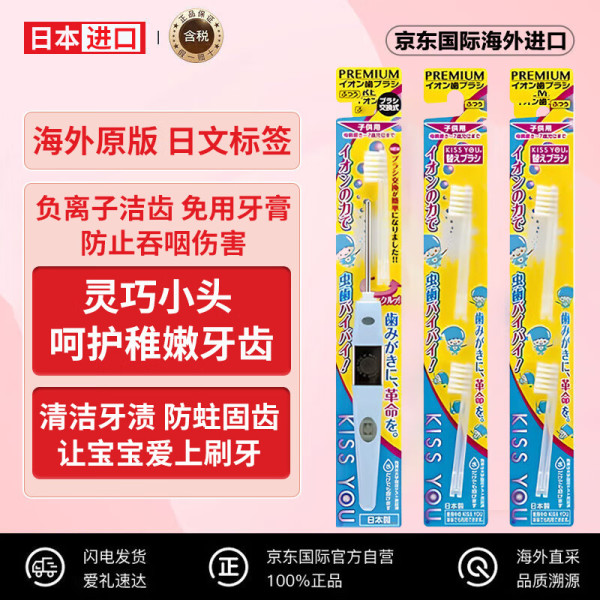 KISS YOU 日本负离子牙刷无需牙膏 清洁口腔牙周 儿童用牙刷 本体+替换刷头2只