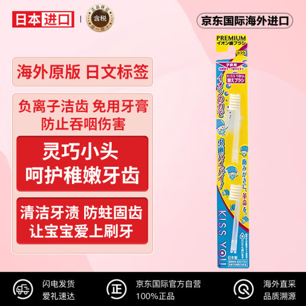 KISS YOU 日本负离子牙刷无需牙膏清洁口腔牙周 儿童用牙刷 替换2个装