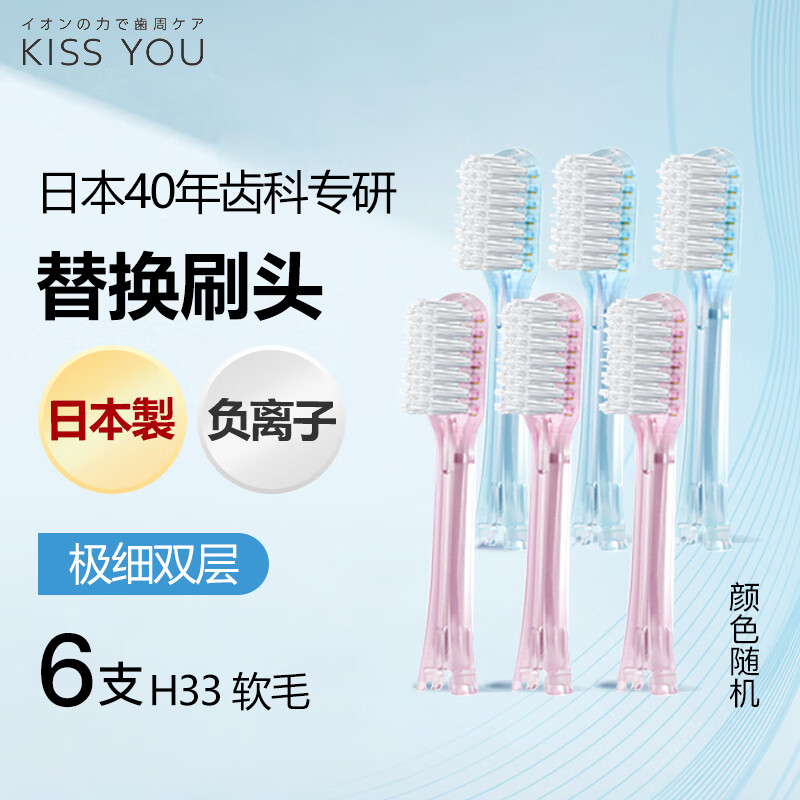 KISS YOU日本进口负离子牙刷成人极细软毛便携家庭装男女士牙刷替换刷头 【双层软毛】H33替换头 6支