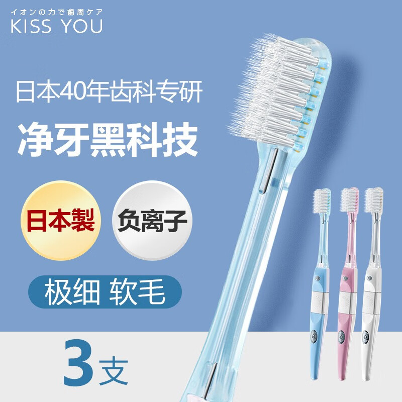 KISS YOU日本进口负离子牙刷成人极细软毛便携家庭装男女士牙刷替换刷头 极细软毛牙刷(H23) 3支