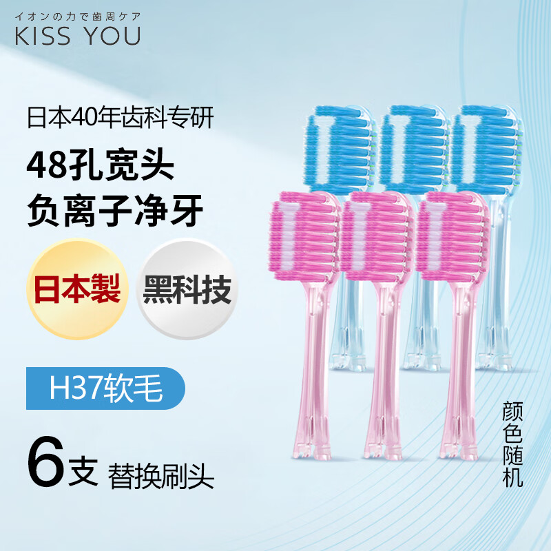 KISS YOU日本进口负离子牙刷成人极细软毛便携家庭装男女士牙刷替换刷头 极细双层宽头-软毛H37替换头 6支