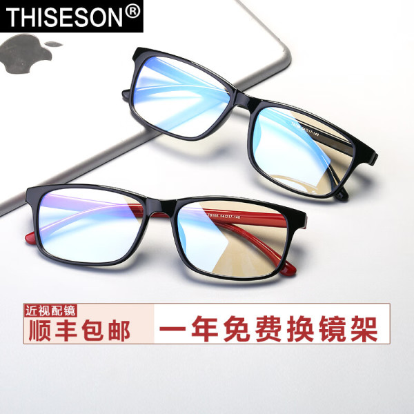 砾石防辐射眼镜 防蓝光男女平光镜电脑手机护目镜 电竞游戏可定近视镜 镜框+1.56防蓝光镜片