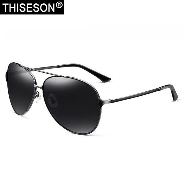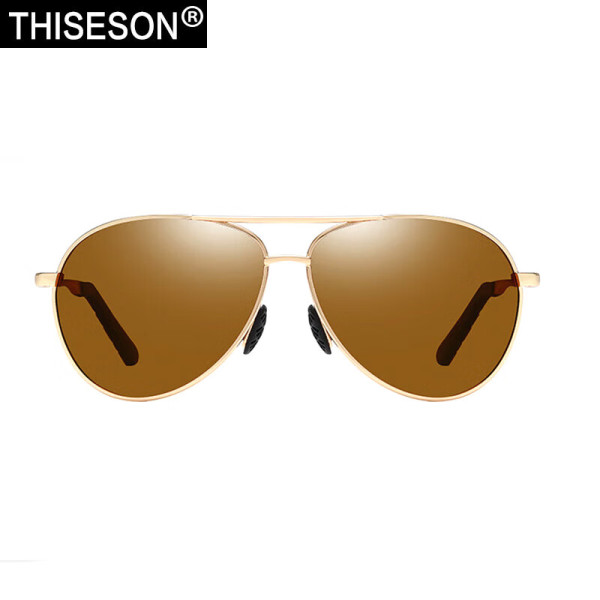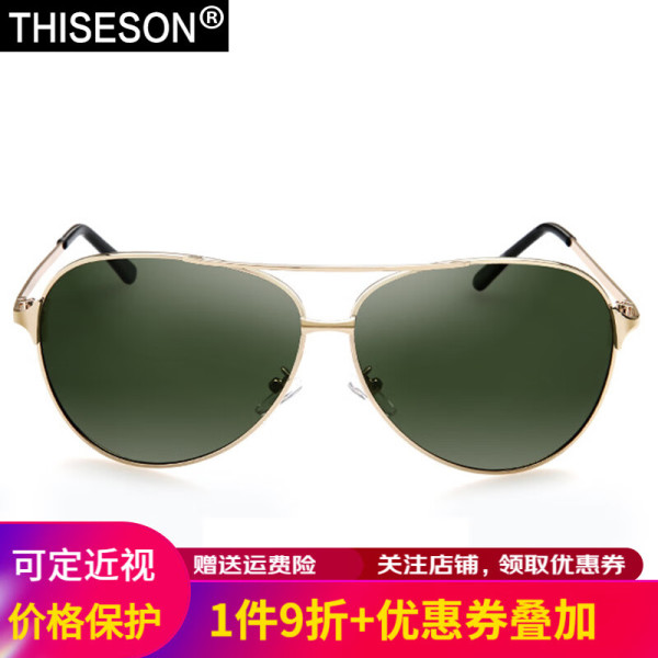 THISESON 砾石 太阳镜男女款偏光墨镜 蛤蟆镜飞行镜 金框墨绿片-偏光无度数