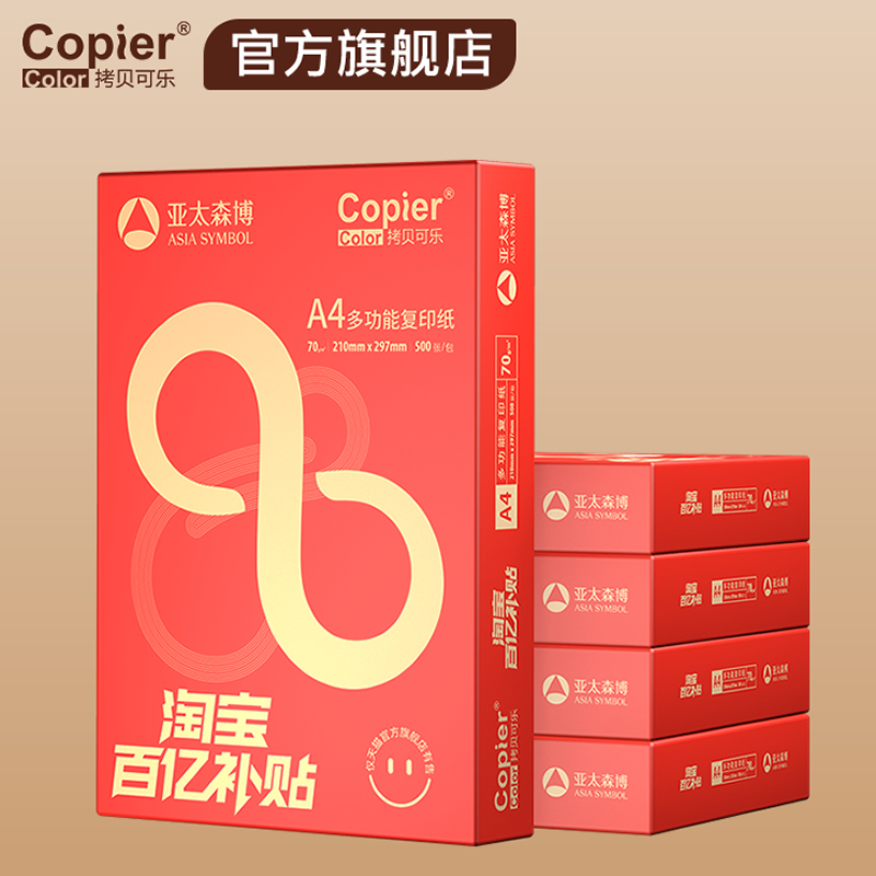 亚太森博A4打印纸70g拷贝可乐复印纸80g百补款橙黄可乐体验装100张 单包500张 整箱5包A4纸学生用纸办公用纸