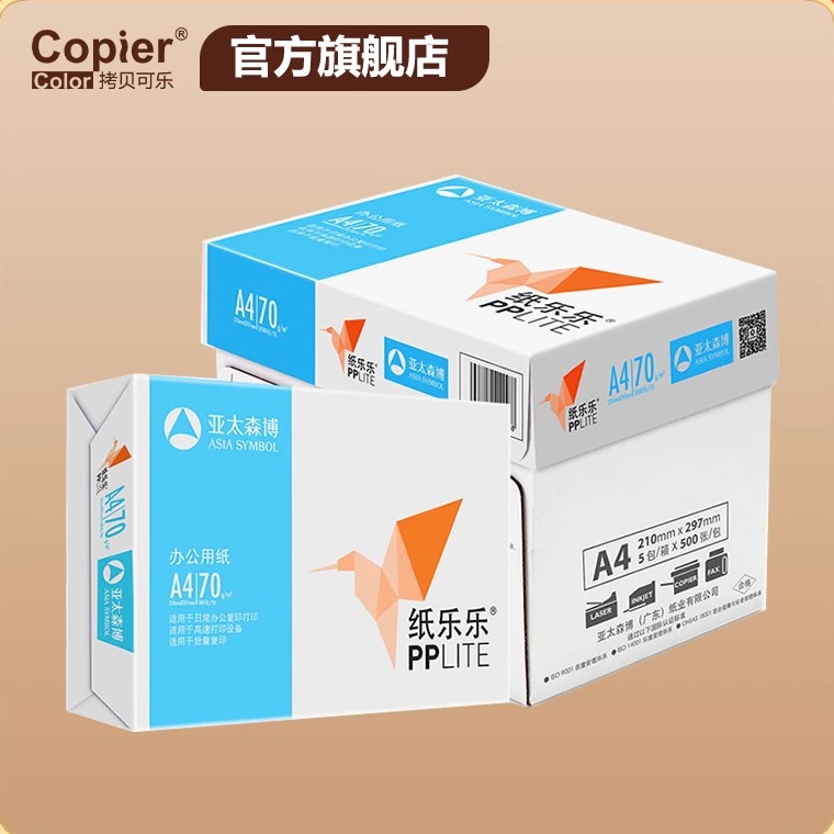 亚太森博拷贝可乐小鸟pplite纸乐乐A4打印纸70g纸向前黑马绿玺一品绿复印纸80g双面打印白纸单包500张整箱5包
