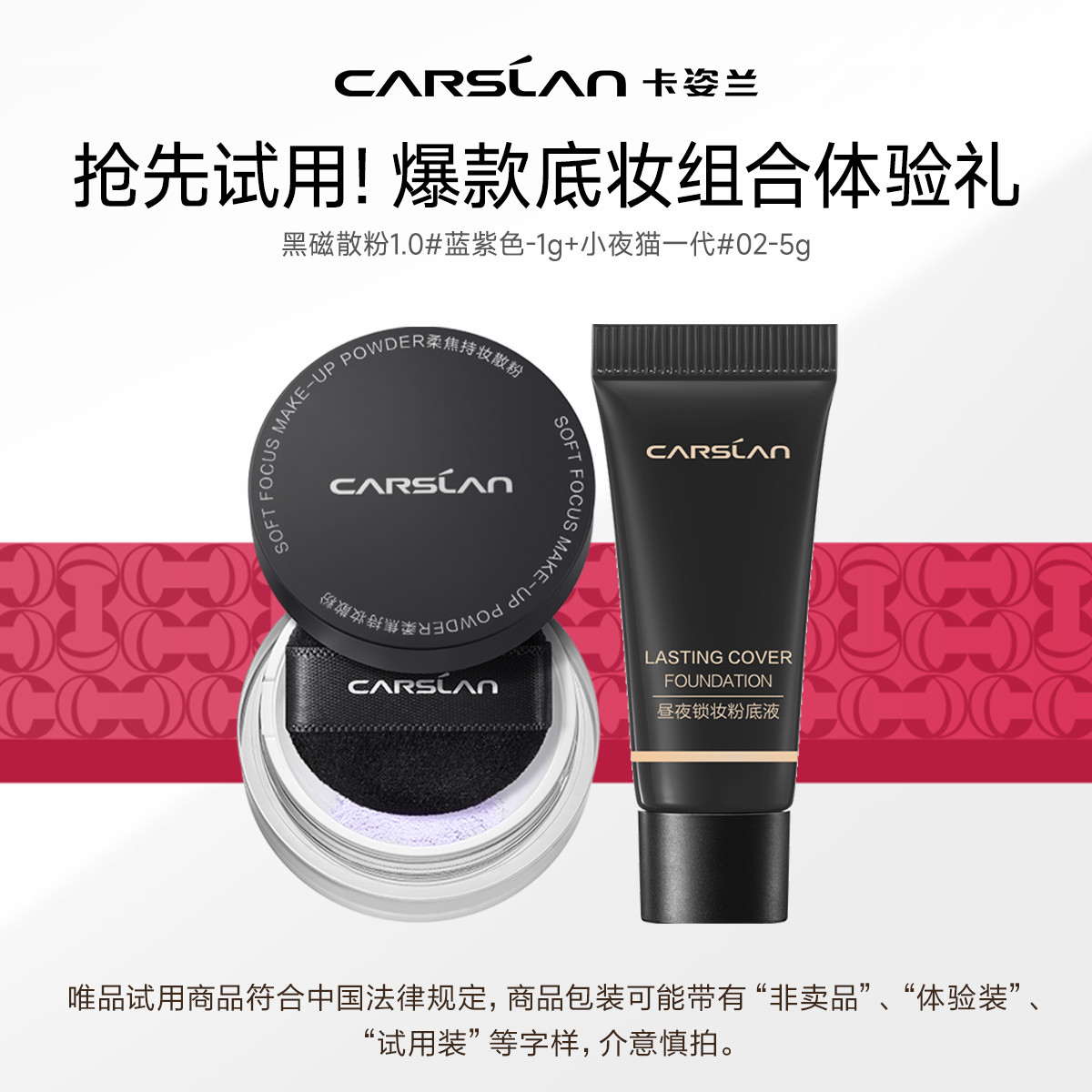 卡姿兰 【唯品试用】双猫粉底液5g 黑磁散粉小样1g组合
