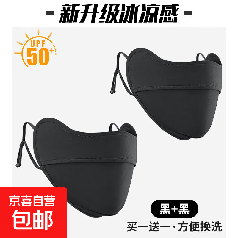口罩男女夏季防晒遮阳护眼角口罩薄透气舒适骑行面罩遮阳冰丝透气 黑色两只装