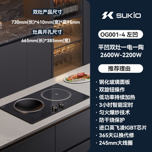硕高 SUKIO 嵌入式电磁炉双灶大功率家用爆炒电磁炉凹面台嵌两用电磁炉电陶炉双炉左凹右平一电一陶OG010