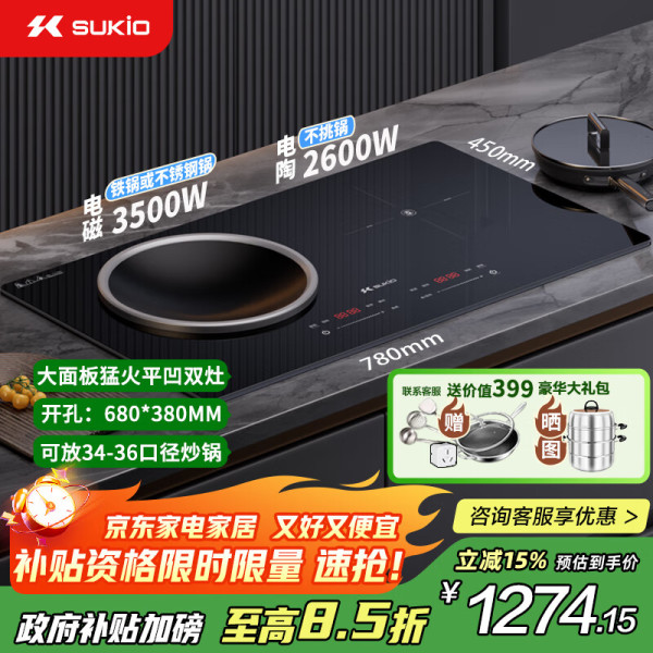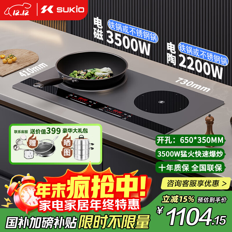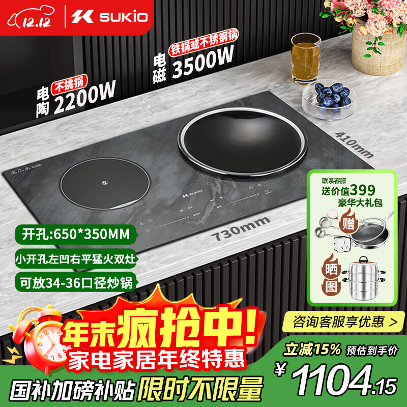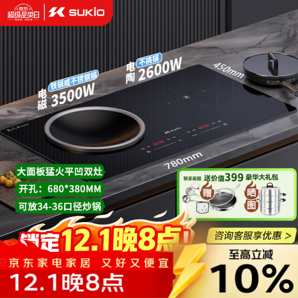 硕高 SUKIO 电磁炉双灶家用猛火灶电陶炉凹面大功率电磁灶电灶台