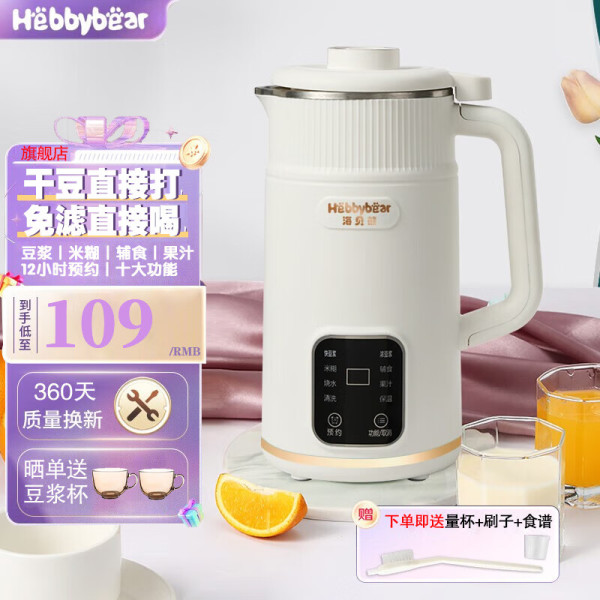 Hebbybear 海贝熊 德国豆浆机破壁机家用800ML小型2-3人迷你全自动免洗免滤料理机多功能预约