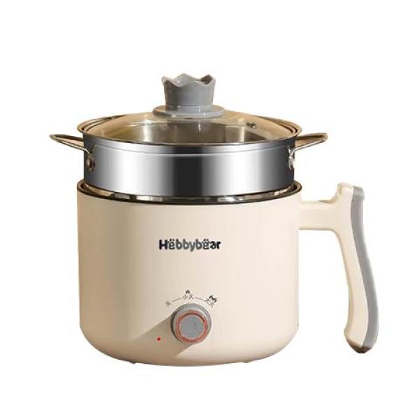 海贝熊 (Hebbybear)德国电煮锅学生宿舍小电锅1-2人煮面神器泡面锅迷你小型炖蒸煮一体电热火锅 1.8L 不粘锅款 礼包【带蒸笼】