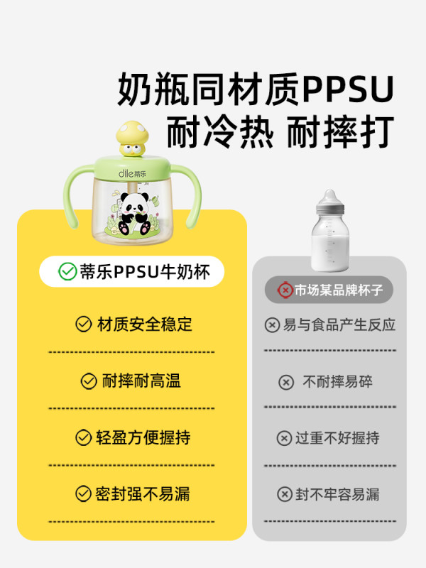 迪乐 Tilo 蒂乐儿童牛奶杯1-2-3岁以上宝宝学饮刻度喝奶瓶直饮PPSU吸管水杯