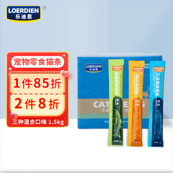 Tilo 迪乐 乐迪恩鸡肉配方 三种混合口味 1.5kg(15g*100根)猫条猫咪零食